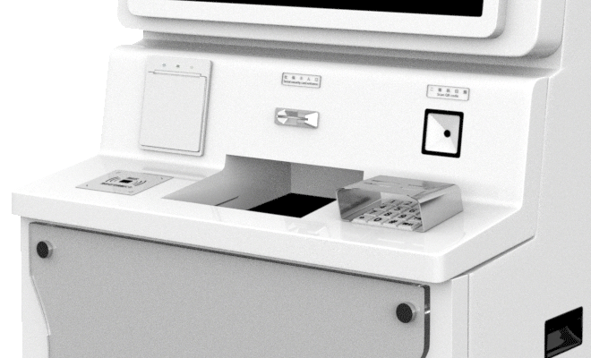設備主要用于醫療場景的綜合自助終端機,用于自助建檔發卡、查詢、繳費 、掛號、取單等,功能模塊豐富,可支撐大部分業務功能,屏幕采用43寸曲面電容屏,支持定制國產化硬件方案。