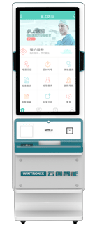設備主要用于醫療場景的綜合自助終端機,用于自助建檔發卡、查詢、繳費 、掛號等,屏幕采用32寸高清電容屏,美觀大氣,大小型醫院常用款式